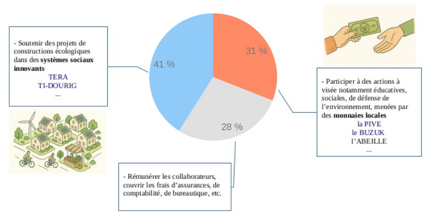 Le renforcement du lien social, des pratiques écologiques et solidaires, ainsi que la relocalisation de l’économie en expérimentant et démocratisant l’usage d’une monnaie locale complémentaire citoyenne dans le Pays de Morlaix.